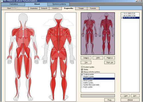 Další výhodou MFK je možnost kdykoliv posoudit historii terapie u každého klienta. Můžeme sledovat souvislost stavu na proběhlé terapii, ale hlavně na životním stylu a denních (pracovních, sportovních) činnostech klienta.